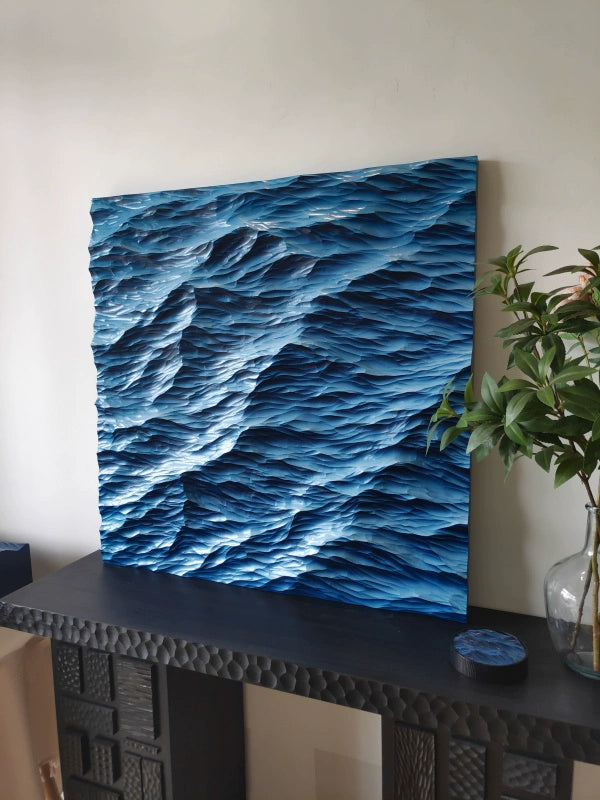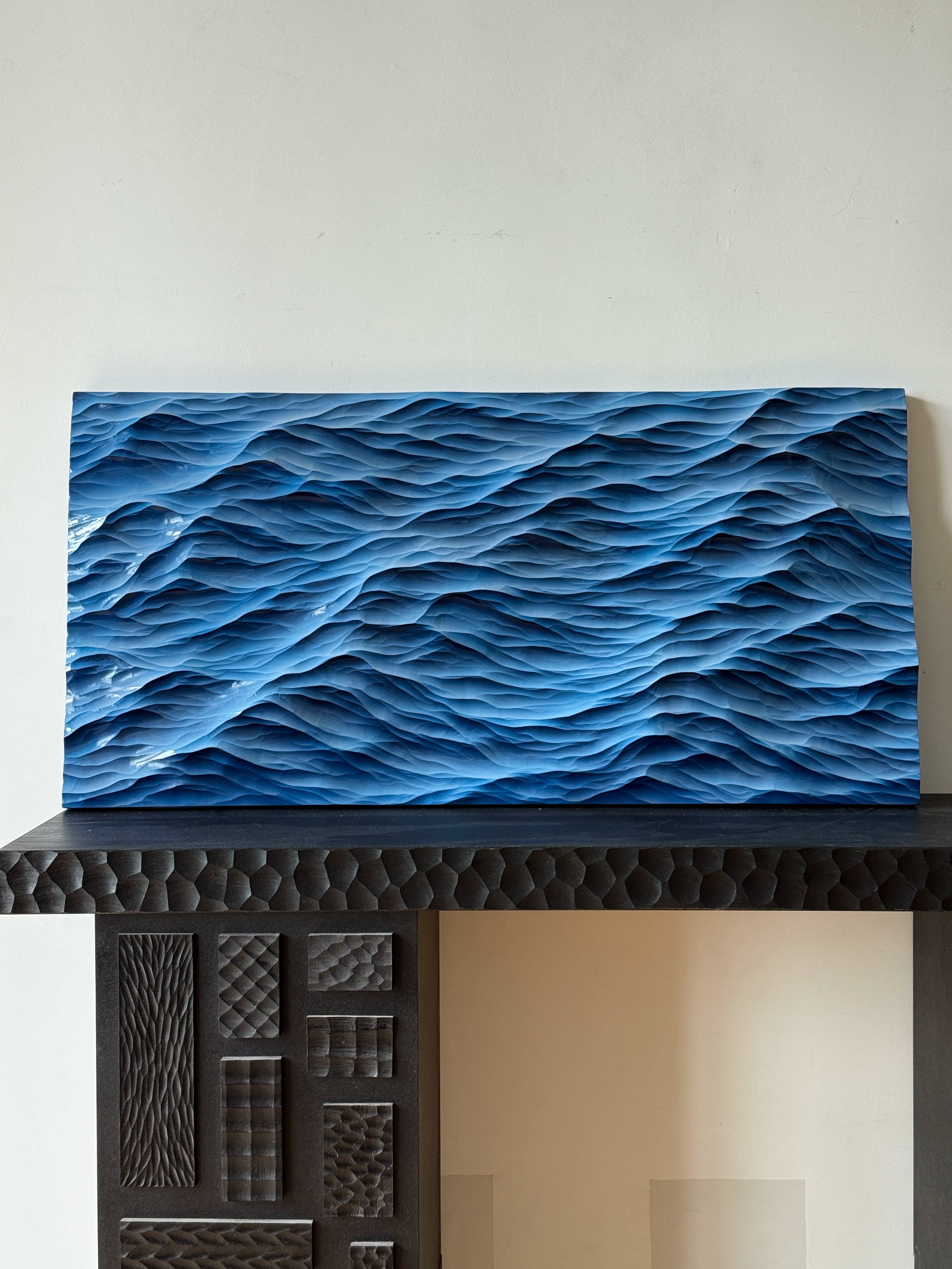Wood carving wave hanging painting custom entrance living room decorative painting niche high-end sofa background